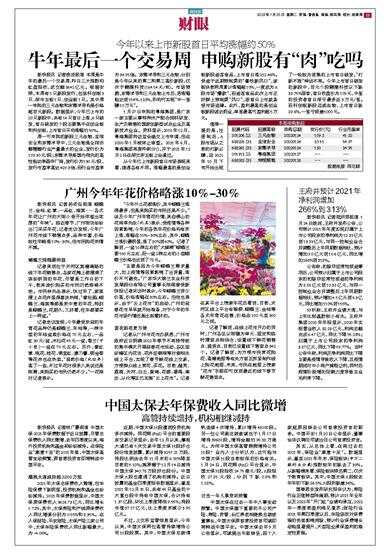 今年以来上市新股首日平均涨幅约50% 新快报讯 记者涂波报道 本周是牛年的最后一个交易周,昨日三大指数均红盘报收,成交额8642亿元。根据安排,本周有5只新股发行,包括科创板3只、深市主板