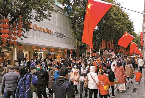 ■春节假期,天河路商圈、珠江新城商圈及东部新商圈等重点商圈联动开展2022年春节促销惠民系列活动,有效增强消费市场人气。 |