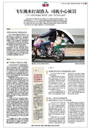 广州一市民日前惨变“落汤鸡”,此前广东已有车主被罚 你有没有在下雨天被汽车溅一身水的经历?近日,受强冷空气和降水共同影响,广东省持续低温阴雨天气。2月20日,市民施小姐就被快速行驶的车辆激