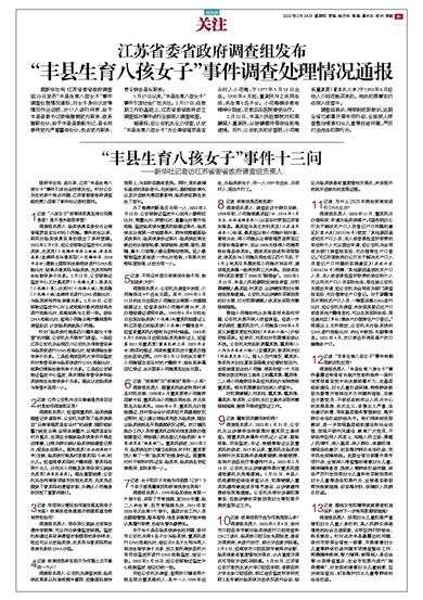——新华社记者访江苏省委省政府调查组负责人 据新华社电 连日来,江苏“丰县生育八孩女子”事件引发社会持续关注。针对公众关注的多个焦点问题,江苏省委省政府调查组负责人回答了新华社记者的提问。