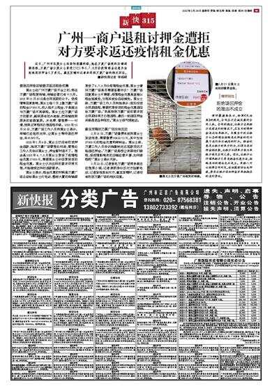 广州一商户退租讨押金遭拒 对方要求返还疫情租金优惠
