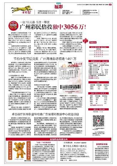 广州彩民倍投独中3056万!