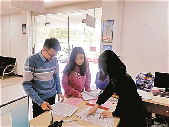 ■陈琳玲与工作队成员一同整理乡村振兴考核迎检材料。 |