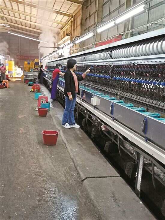 ■黄敏容到厂里查看刚开工的机器运转情况。 |