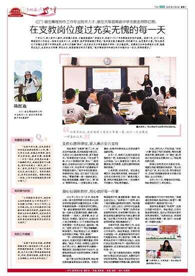 江门-崇左粤桂协作工作专业技术人才、崇左天等县高级中学支教老师陈红艳: 陈红艳 江门-崇左粤桂协作工作专业技术人才、崇左天等县高级中学支教老师 “如果有机会,我很想请父母来天等