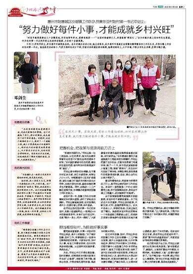 惠州市驻惠城区汝湖镇工作队队员兼东亚村驻村第一书记邓剑尘: 邓剑尘 惠州市城管执法局驻惠州市惠城区汝湖镇帮镇扶村工作队队员,东亚村驻村第一书记 “农村无小事。实践发现,有些工作