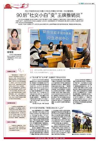 阳江市驻阳东区红丰镇工作队队员兼红丰村第一书记雷楚楚: 雷楚楚 中共阳江市委机构编制委员会办公室驻阳江市阳东区红丰镇帮镇扶村工作队员、驻红丰村第一书记 “要有站得高、看得远的胸