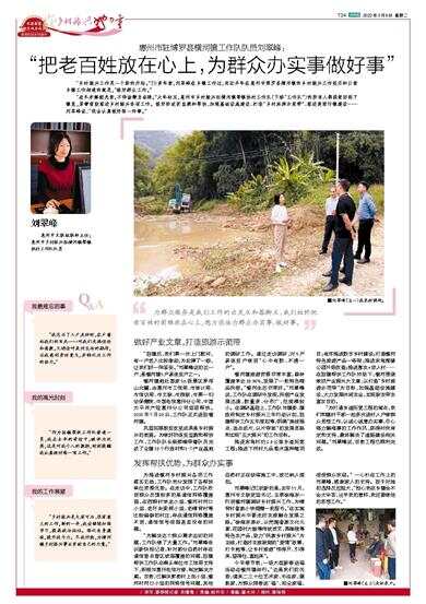 惠州市驻博罗县横河镇工作队队员刘翠峰: 刘翠峰 惠州市文联组联部主任;惠州市乡村振兴驻横河镇帮镇扶村工作队队员 “为群众服务是我们工作的出发点和落脚点,我们始终把老百姓的困难放