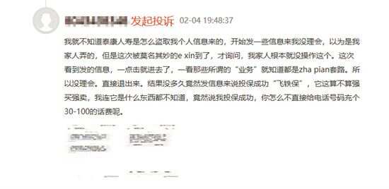 “使用手机软件时不小心点到广告,然后就被告知投保成功了!”近日,有读者向新快报记者投诉称,泰康人寿在未经其同意的情况下,为其投保了泰康人寿旗下的“飞铁保”产品。该读者表示,自己并没有将个人信息给予泰康人寿,泰康人寿是如何获取自己的个人信息的呢?他要求该公司删除其个人信息,并对此做出解释。就此,新快报记者向泰康人寿发出了采访提纲,但至截稿前,该公司并未做出回应。 事实上,这并非孤例,不久前也有媒体曾报道过,不少用户在不知情的情况下,被投保泰康人寿的“飞铁保”产品。对此,有律师表示,保险公司在未收到消费者投保意愿,就强加给消费者保险的行为,属于典型的“强制交易”的行为。消费者可起诉保险公司,要求其承担侵权赔偿责任。 ■新快报记者 林广豪 “一觉醒来 我被投保成功了” “中午一觉睡醒,我就收到了‘泰康飞铁保Plus意外伤害保险产品计划(互联网)’领取成功的短信。”消费者陈发(化名)对新快报记者说,自己明明没有投保,却无故收到投保成功的通知。 陈发告诉记者,他后来打了泰康人寿的客服电话,对于他的疑问,客服对他解释的原因是,可能他在使用手机软件时点到广告导致。对此,他十分不解:“就算是点到广告,也不至于直接就投保了吧?” 虽然此事没给他造成直接的经济损失,但他仍向泰康保险发出了质疑,“我从来没有领取过任何保险,也未授权任何人开通保险。你们从哪里获得的信息开通?” 记者在泰康人寿保险官方公众号上看到,“飞铁保plus(互联网)”的介绍中写着,其为首批互联网人身保险产品,保障飞机、铁路交通意外伤害,0元体验,90天畅游无忧。当中特别说明,“0元体验”是公司向客户免费赠送保险。泰康人寿客服告诉新快报记者,该产品不会收取费用,保障期为90天,到期了就会自动失效。 据泰康人寿方面介绍,“飞铁保”是“飞常保”和“铁定保”产品的简称,并非今年新推出的产品。2014年4月,该公司首创全民免费航意险模式,相继推出 “飞常保”“铁定保”产品,两者分别免费提供每人每份保额100万元的航空保障和每人每份保额50万元的高铁意外保障。据泰康保险方面披露,截至2014年末,“飞铁保”赠险超过2100万件。 消费者担心个人信息安全 对于消费者来说,赠送的免费保险真的是礼物吗?记者在黑猫投诉平台上搜索到不少关于泰康“飞铁保”的投诉。 投诉信息显示,消费者获得“飞铁保”赠险的渠道不尽相同。有人“抽奖时不小心输入了身份证号码,就被告知投保了”;有人“在方便面手机扫码领红包活动中,显示中了20元话费,填完信息后却收到投保泰康人寿的飞铁保成功的短信”;还有人“通过支付宝,在车行易生活号,查询加载分,点击确定查询(没有仔细去看规则),自动给我投保了泰康人寿飞铁保plus,打人工客服还不解除保险,叫我上公众号去解除”。 面对突如其来的“礼物”,多数消费者表示,根本不知“飞铁保”为何物,他们也没有将个人信息给予泰康,泰康人寿在未经他们允许的情况下给他们投保,要求泰康方面退保。对泰康如何获取到消费者的个人信息,他们表示质疑,并要求泰康删除个人信息并对此做出解释。 有业内人士透露,“赠险”一般有4条投放渠道,分别是短信附带链接、第三方平台及手机支付界面广告、用户下载App的浏览界面以及业务员主动联系客户。该人士透露,“只要填入手机号码,合作平台就会提供个人信息给保险公司,公司会据此给客户投保。” 泰康客服告诉新快报记者,很多信息是实名绑定的,即使没有填入身份证号,只要填写了手机号码,就可以获得个人的其他信息。可能客户在浏览网页的时候输入了手机号码或者利用微信扫码时点了某些链接就领到了“飞铁保”。 对于消费者应该如何取消“飞铁保”,上述客服向记者表示,客户可以使用泰生活APP进行自助退保,如果想将自己的个人信息删除,可以在APP中将账户注销。 “飞铁保”如何收集个人信息? 互联网保险逐渐成为保险行业的一个风口,在快速发展的同时,其亦乱象丛生,监管部门对此频频祭出重拳。去年8月,银保监会下发《关于开展互联网保险乱象专项整治工作的通知》,重点整治销售误导、强制搭售、费用虚高、违规经营和用户信息泄露等突出问题。 赵占领律师表示,部分互联网企业可能基于推销所代理的某款保险产品的考虑,主动向消费者赠送某款保险产品。这里面可能会涉及到,如果用户没有主动填写他的个人信息,那么经营者通过什么方式获得他的个人信息,获得的途径、手段是否合法,这些是值得探讨的问题。 那么,上述投诉中的投保过程是否规范?投保过程中,泰康人寿通过什么方法/提示征求消费者的同意?泰康人寿是如何采集用户的个人信息并用于投保?消费者应如何查看保单是否撤销和被收集的个人消息是否删除?近年来,关于互联网保险业务的监管更加严格和规范,为何今年以来,泰康人寿仍然收到如此多相关的投诉? 记者将上述问题以及相关投诉情况转至泰康人寿方面,至截稿前,对方未就此做出回应。 律师说法 遇到“被投保” 可直接举报保险公司 知名IT行业专业律师赵占领律师认为,基于消费者确实没有选择购买某款保险产品,而被投保的情况下,“只要是未经消费者同意而给消费者投保,那这就侵犯了消费者的知情权和自主选择权,显然是一种违法行为。” 保险专业