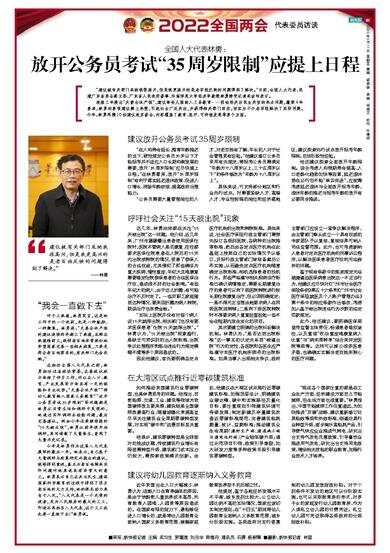 全国人大代表林勇:放开公务员考试“35周岁限制”应提上日程