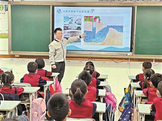 新快报讯 记者陈慕媛 通讯员南科协 冯嘉敏报道 日前,广州市南沙区水务局利用“世界水日”“中国水周”科普志愿活动契机,邀请科普志愿者、广州市水务科学研究所工程师卓泉龙走进南沙区金隆小学,引导学生“探秘神奇的地下水”。 卓泉龙带来主题为“珍惜地下水,珍视隐藏的资源”的科普讲座,并从水资源的分布、生活用水的来源渠道、地下水的污染及超采后果等内容展开分享。 他提到,地下水一旦被污染,会导致鱼虾死亡,造成人类疾病、农作物减产和土壤盐渍化、损害工业产品质量。“每一位学生都是保护地球的小卫士,都是地下水的守护者。”卓泉龙说道。 卓泉龙还提到了水效标识。他说在日常生活中,要使用“中国水效标识”节水型水龙头、洗衣机、马桶,以节约水源。与此同时,他提倡小件衣服手洗,大件衣服集中洗。 最后,卓泉龙带领学生进入“科普知识抢答”环节,学生们积极踊跃答题。