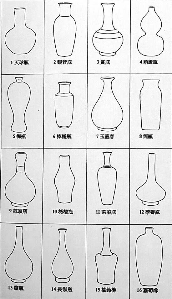 ■花器里的“瓶”的各种样式。《黄永川教授年度大展主题论文集·1995年文人插花至2014年异常邂逅》供图 |
