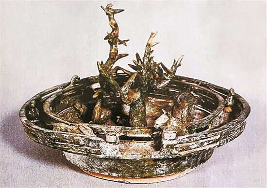 ■汉代,花树绿釉陶盘,现藏大英博物馆。《中国传统插花艺术》供图 |