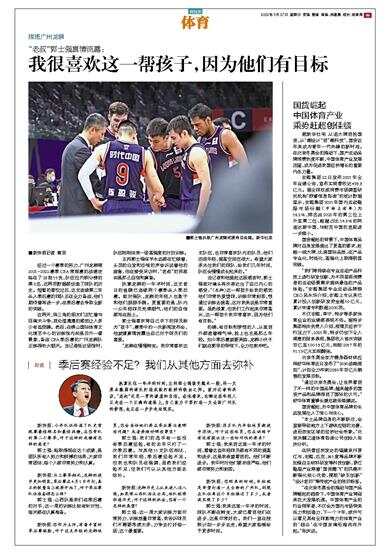 探班广州龙狮 ■新快报记者 高京 经过一个赛季的努力,广州龙狮将2021-2022赛季CBA常规赛的战绩定格在了23胜15负,队伍位列积分榜的第8名,这两项数据都创造了球队的历史。短