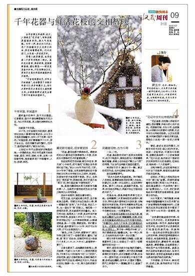 千年花器与鲜活花枝的交相辉映
