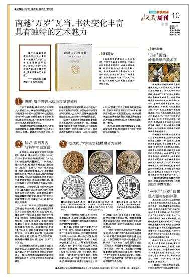 ■收藏周刊记者 潘玮倩 通讯员 黄巧好 像广州南越宫署遗址这样,如此大量且单一地使用“万岁”文字瓦当是极为罕见的。同时,“万岁”二字布局严谨,而又富于变化,具有很高的艺术价值。 ——