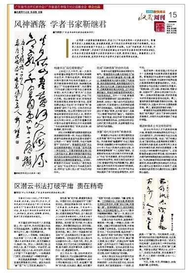 ■钟东(中山大学教授、广东省书法评论家协会副主席) 区潜云(1938-1998),广州中医师、书法家、武术家。2022年2月25日,中华民族文化促进会在广州二沙岛岭南会举办了“区潜云草书艺