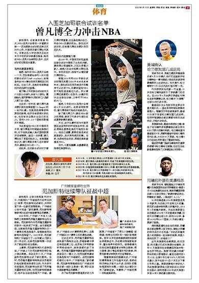 入围芝加哥联合试训名单 新快报讯 记者高京报道 昨天,NBA选秀大会前的一次重要训练——芝加哥联合试训的名单正式对外公布,中国球员曾凡博位列其中。目前这名19岁的球员正在为本月中旬的试训做