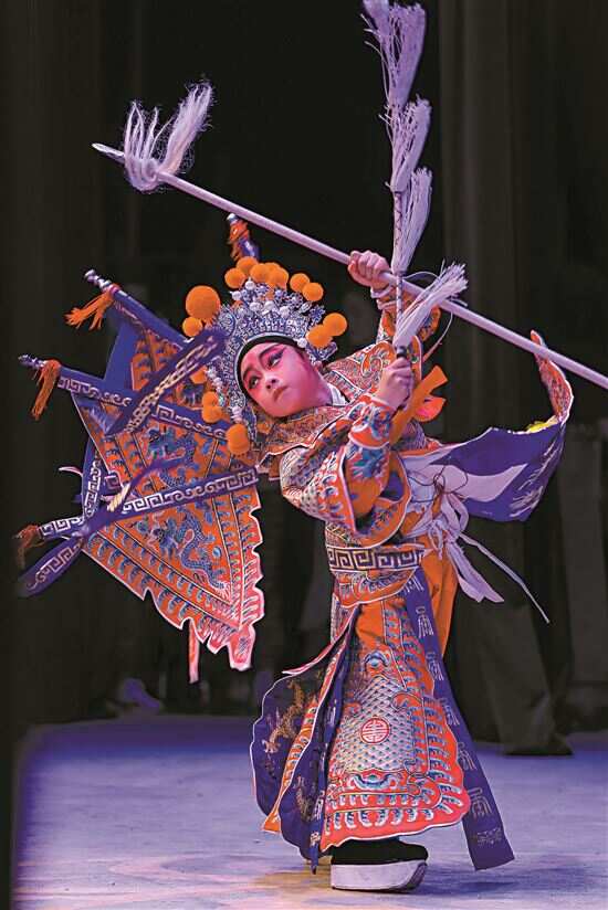 ■粤剧小将“杨再兴”。比起粤剧演员,张沥行更希望以后能成为一名粤剧老师:“像我的老师们一样,教更多人认识和学习粤剧。” |