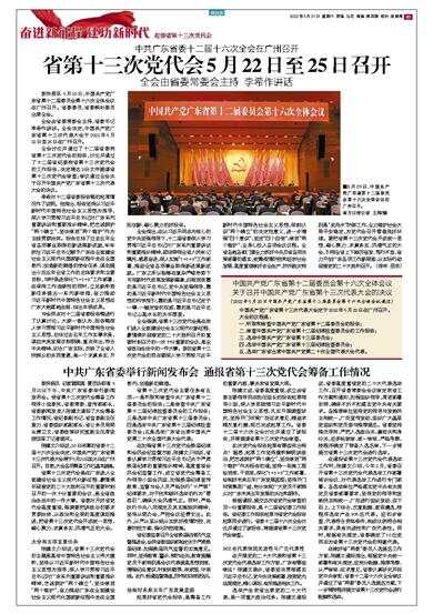 中共广东省委举行新闻发布会 通报省第十三次党代会筹备工作情况