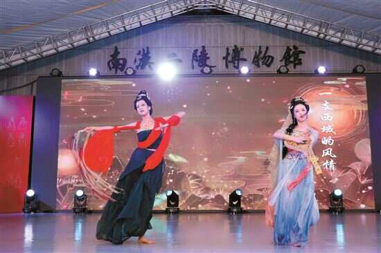 ■“只此绚丽——广州出土汉代珠饰展”开幕式现场的《相和歌》盘鼓舞表演。 |