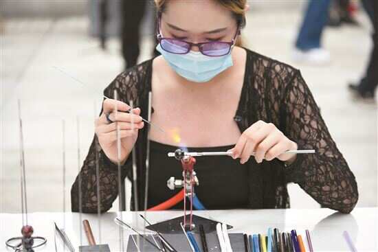 ■广州美术学院美术教育学院老师现场演示广州汉代蜻蜓眼玻璃珠烧制技艺。 |