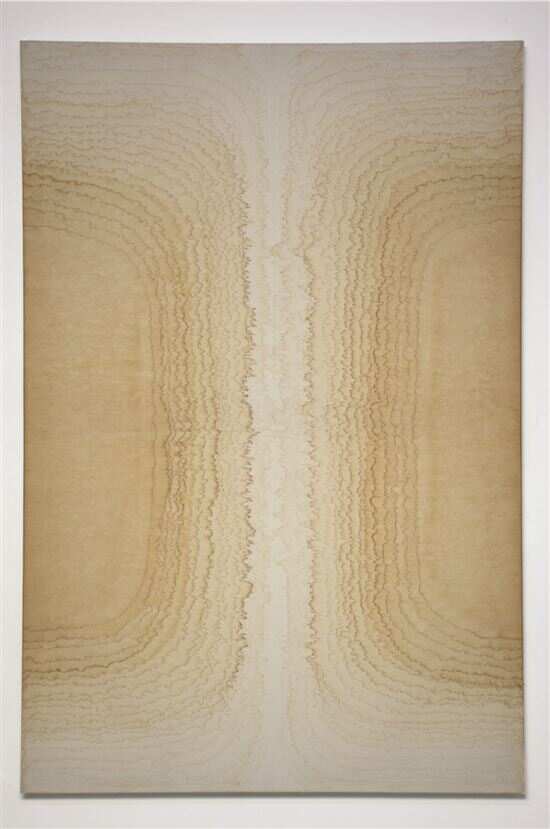 ■黎鸿城《密近双星的洛希瓣》,普洱茶水,棉布,80x120cm,2022年 |