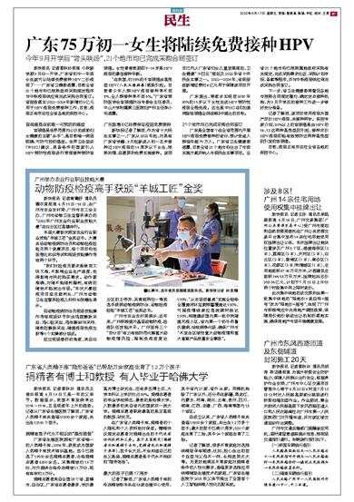今年9月开学后“尝头啖汤”,21个地市均已完成采购合同签订 新快报讯 记者黎秋玲报道 今秋新学期9月份一开学,广东省初中一年级女生就可以陆续免费接种HPV二价疫苗了……广东省卫健委透露,目