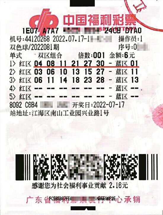 其领奖时表示选号没秘诀全靠机选 新快报讯 记者陆妍思 通讯员梁一鸣报道 7月17日,双色球进行第22081期开奖,广东中出1注918万多元,落户江门,中奖彩票是一张机选的6元3注单式票,由江海区南山工业园兴业路1号的44120268投注站售出。7月19日,大奖得主小陈(化名),在父母的陪同下来到江门市福利彩票发行中心兑奖。 接触福利彩票不足半年 在办理手续过程中,小陈和市福彩中心工作人员热情地聊起他的中大奖经过。据了解,小陈是00后,来江门市务工已有几年时间,身上有着同龄人的与众不同的成熟。他是一位彩龄不足半年的彩民,今年3月初在朋友的影响下,开始接触中国福利彩票。既有机会逐梦大奖实现美好生活,又能奉献爱心支持公益事业,是他购买中国福利彩票的初心。 问及小陈平常购彩有什么选号技巧,他表示没有秘诀,一直都是机选的。与其他彩民在研究号码过程中获得欢乐和满足不同,小陈平常忙于上班,很少专门去研究开奖号码,喜欢机选的爽快和期待开奖的感觉。他每周大概2-3次下班后抽空去南山工业园兴业路1号中国福利彩票第44120268号销售场所购买彩票,“双色球”“快乐8”“刮刮乐”等游戏雨露均沾。小陈认为彩票出奖是概率性的,中奖与否全凭随机运气,因此他一直都是机选号码,每次花6~10元购买几注双色球。他的彩票也经常中五、六等奖,为他带来快乐。 7月17日傍晚,小陈到44120268投注站购彩时,获悉江门市蓬江区彩民7月11日机选中出“快乐8”游戏“选十中十”750万元大奖时,他也幻想什么时候自己机选也中个大奖,没想到自己当晚就梦想成真了。 带上父母见证兑奖一刻 小陈习惯了从手机上查看福利彩票的开奖信息,当晚开奖后,他发现蓝球开奖号码是“01”。在他印象中,当期机选的彩票其中1注的蓝球也是“01”,当翻出彩票对比第1注号码完全与开奖号码重合时,知道自己中了一等奖,再看到有918万多元的奖金,小陈兴奋激动了一宿。在了解清楚大奖兑奖相关流程,给父母准备了一个惊喜后,时隔一天领上父母一起来江门市福彩中心见证他的人生高光时刻。 小陈坦言,中国福彩一起造福,感谢双色球大奖改变命运,让他们一家往后能过上更富足的生活,自己还会一如既往支持中国福利彩票,理性购彩量力而行。 7月20日,江海区南山工业园兴业路1号的44120268投注站鲜花竞放,鞭炮齐鸣。江门市民政局、市福利彩票发行中心,江海区民政局、区福利彩票发行中心共同为该站点中得双色球第22081期一等奖918万元大奖举行庆祝活动。江门市民政局党组成员、副局长林雁冰为销售场所负责人颁发中奖证书和宣传费奖励。 相关新闻 又是机选 惠州10元票撞中792万元 新快报讯 记者陆妍思报道 7月24日晚,福利彩票双色球游戏进行第22084期开奖,当期全国中出5注792万多元头奖,其中广东中出1注落户惠州。 第22084期双色球的中奖号码为:红球“03、18、23、24、25、32”;蓝球“09”。当期红球号码大小比5:1,奇偶比3:3,三区比1∶1∶4,“23”“32”为隔期开出的跳号,“18”与上期号码形成斜连号,开出一组三连号“23、24、25”及一组奇连号“23、25”,同时开出一组同尾号“03、23”;蓝球则开出“09”。 当期一等奖中出5注,单注奖金792万多元。这5注一等奖花落4地:四川中出2注,内蒙古、山东、广东各中出1注。 据核查,广东大奖出自惠州市,中奖彩票是一张10元5注机选单式票,由惠城区三栋镇木沥村福鑫购物广场旁的44080077投注站售出。 同期二等奖中出97注,单注金额18万多元。当期末等奖开出1415万多注。 当期全国销量为3.68亿多元。开奖后,双色球奖池金额为20.55亿多元。下期,彩民依然有机会2元中得1000万元。