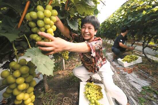 ■8月23日,在浙江省湖州市德清县洛舍镇三家村,果农在采收葡萄。当日是处暑节气,农民抢抓农时积极开展农事活动。新华社发