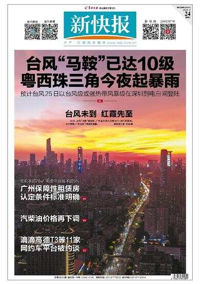 预计台风25日以台风级或强热带风暴级在深圳到电白间登陆 台风未到 红霞先至 23日,台风“马鞍”登陆前,广东省出现大范围35℃-38℃的高温。当天傍晚,广州出现了绚丽的晚霞。新快报记