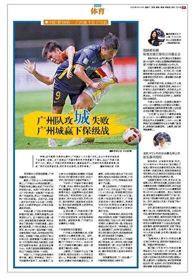 ●中超·第18轮 广州城 1∶0 广州队 昨晚,在中超第18轮的比赛中,广州城以1∶0小胜广州队,本土小将李永佳打进了全场唯一进球。这个进球让广州城时隔四年半再度赢下了德比,也让广州城又拿