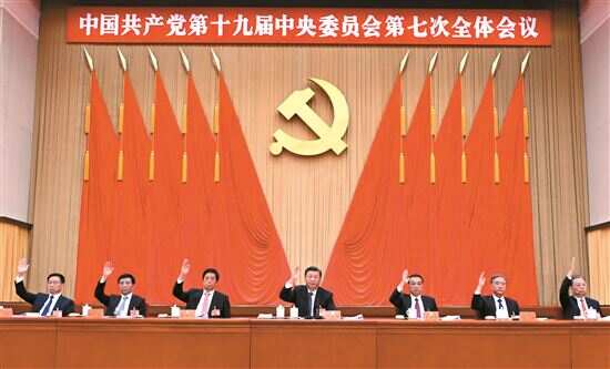 ■中国共产党第十九届中央委员会第七次全体会议10月9日至12日在北京举行。这是习近平、李克强、栗战书、汪洋、王沪宁、赵乐际、韩正等在主席台上。新华社发 |