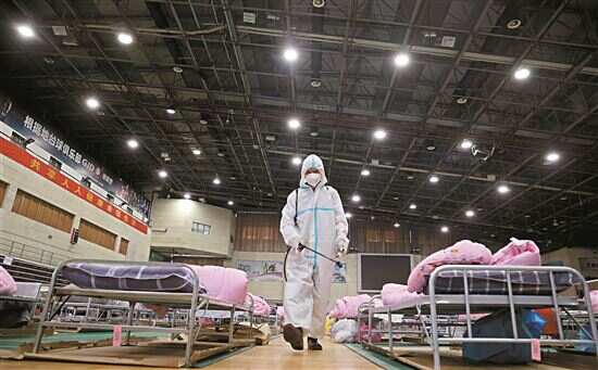 ▲为了保证安置点的安全,工作人员每天固定六个时段进行消杀。 |