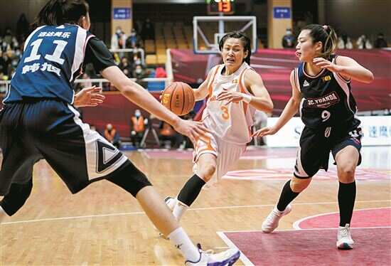■杨力维(中)与李梦(右)在WCBA联赛中对抗。新华社 发 |