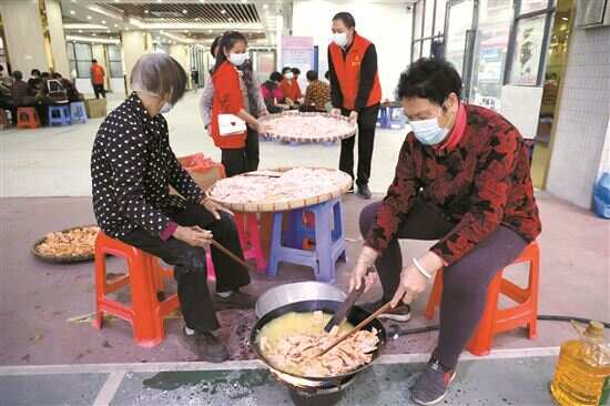 “煎堆碌碌,金银满屋”“油角弯弯,家财百万”。近日,广州市白云区嘉禾街望岗联社望南社区酒堂内人头涌涌,空气中弥漫着浓浓的油香,油锅内煎堆、蛋散随着锅勺上下,金黄色的外观让人垂涎欲滴。原来,为迎接春节,望南社区召集居民前往酒堂炸煎堆、油角、蛋散,并将这些“年味”分送给社区里的困难户与长者,为家庭送去祝福与温暖。这也是望岗联社年味的缩影,嘉禾街望岗、科甲等经济联社过年前都会组织村民炸煎堆油角,在春节期间,还有当地的曲艺社搭台唱粤剧助兴,当然也少不了岭南传统舞狮…… 炸煎堆油角送老人 家家户户分享年味 “疫情以来不能组织村民聚在一起炸煎堆油角,大家都感叹年味缺了一点,现在终于又可以组织了,我一发布活动接龙马上就很多人报名。”望南社区居委主任黎伟前告诉记者,大家不止自己报名,还带上家里的小孩一同前来,大人唱主角,小孩就打下手,“过年就是要这样才热闹。”本来活动想在村内的祠堂举行,不过这段时间刚好连续阴雨,所以就搬到酒堂进行。所谓的酒堂也是当地举办公共活动的场地,村民摆酒、端午龙舟饭都会在这里举行。 步入酒堂,阵阵欢乐的聊天声、笑声传来。村民、社区志愿者五六个围坐一桌,一边拉家常,一边和面、搓煎堆胚、揉捏蛋散皮,年纪稍大的孩子也动手参与,感受着传统美食文化的熏陶。 巧妇们分工有序、井井有条地促进活动的进行,只见她们手指轻轻一抹、一捏、一搓、一转、一收,一个煎堆胚便圆碌碌地“躺”在她们的手掌心里。圆润的煎堆对于油温十分之“挑剔”,村民把四五个白白胖胖的煎堆胚放入油锅,并用漏勺推着煎堆不停地打圈、旋转、按压。煎堆越“碌”越大,表面逐渐变得金黄,体积缓慢膨胀成一个个小圆球。炸好后,村民便将其迅速捞起,抖动漏勺甩出多余的油,放在木板上晾冷,香味弥漫在活动大厅中。 稍等煎堆油角等冷却之后,志愿者将他们分别装好,送到村内的困难户及老人家中,“朗叔注意身体啊,祝你健健康康,新年更加开心!”黎伟前带着几名志愿者到了七旬老人黎达朗家中送上刚出炉的年货,还不忘送上新年祝福。“谢谢你们,大家都过个好年啊。”黎达朗回道。 昔日老旧公园换新装 展示现代社区的活力 就在酒堂一街之隔的望南公园内,尽管连日阴雨,也有不少村民在下棋、散步,“环境好啊,憋在家里也闷,出来走走多好,不要浪费这么好一个公园。”村民波叔对记者说。这片昔日被危旧房包围的小公园,在去年初正式完成升级改造,公园空间大大拓展,蜕变成既能观赏、休憩、游玩,又能运动健身、搭台唱戏的现代化公园。旧日空间狭窄的树林下、池塘边,如今建起了亲水平台、文化长廊,成为了老人小孩放松玩乐的好去处。在充分保护当地树木和历史风貌的前提下,望南公园原本拥挤不堪的空间有了更大的“呼吸”功能。 据悉,望南党建公园是广州市社区设计师“社区事·大师做”“社区事·专职做”“社区事·街坊做”的项目之一,也是嘉禾街和望岗经济联社年度十项民生实事之一。在市、区规自局的大力指导和嘉禾街、望岗经济联社的全面谋划下,望南公园已经成为居民树下对弈、池边纳凉、园内健身的新场所。 “我们选取了嘉禾街人口密度最大、建筑物最密集、公共空间最缺乏的望南社区,作为人居环境提升试点,通过绣花功夫,打造了一个充分保护现有建筑风貌、尊重本地特色的党建公园。既保存了浓厚的乡土气息,又体现了现代社区应有的活力。”嘉禾街党工委主要负责同志告诉记者,该街还通过查询历史、收集史料等方式,深入挖掘望岗优秀的文化传统,汇编了《望岗记忆》,增添历史的厚重感,让群众留得住记忆,记得住乡愁。 基层治理体系和治理能力 通过党建引领推进现代化 望南公园的新变化也是望岗社会治理新变化的缩影。去年3月,嘉禾街道办事处、望岗经济联社与白云高新区投资集团有限公司签订探索超大城市社会治理精细化品质化战略合作协议,按照“政府引导、企业参与、社会共建、智慧便民”的思路,共同打造望岗探索超大城市社会治理精细化品质化区级示范点。去年8月,嘉禾街在区委、区政府的有力指导下,全面开展基层党建引领城中村治理工作。按照明底数、强组织、保平安、科技赋能的工作部署,推进全街基层治理体系和治理能力现代化。 嘉禾街希望通过产业平台打造夯实城市发展基础、升级城市形态。目前,广州移动互联网产业园已全面开工建设,将建成海润食品生鲜全产业链数字化应用中心、魅视分布式综合管控平台创新中心、白云嘉禾物联网大厦、高端软件总部大厦、广州中央法务大厦、讯猫总部大厦等总部集群。围绕三大项目平台的打造,白云智慧城和白云新城嘉禾望岗商务核心区通过市规委会审议,将全面建设高端产业和现代服务业总部聚集的核心商务区,实现城市建设和城市管理的高端化、品质化发展。 智慧化建设将引领城市治理的未来。嘉禾街、望岗经济联社将在建设社区智慧化安防系统、物联网感知设施、智能文化体育设施方面持续发力,搭建社区综合管理平台,打造出租屋“大物管”管理服务体系,以现代标准化企业管理和信息技术智慧化建设,不断优化升级社区治理和出租屋管理水平。加快望岗综治中心升级改造,推动“综治中心+网格化+信息化”实体化运作,实现社会治理