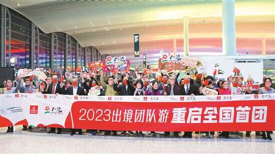 多个旅行团分赴阿联酋、埃及、泰国、柬埔寨等国 2月5日晚上9时,近50名游客齐聚新白云国际机场T2航站楼48号门,他们将分别参加由广之旅组织的“阿联酋迪拜、阿布扎比6天”和“埃及10天”路线,乘坐阿联酋航空2月6日零时15分起飞的航班EK363,开启他们的出境之旅。这是自2020年1月26日国家文旅部宣布“全国旅行社及在线旅游企业暂停经营团队旅游及‘机票+酒店’旅游产品”时隔三年后,全国首个出发的出境旅游团队,标志着我国出境团队旅游业务正式拉开重启大幕。 ■采写:新快报记者 许婉婕 通讯员 李晓健 ■摄影:新快报记者 郭思杰 机场启用团队专属值机柜台 白云机场专门为出境团队游客启用团队专属值机柜台,提升旅客办理手续效率,节省旅客出行时间成本,提供给旅客温馨、快捷、舒适的出行体验。 阿联酋航空中国区总经理李旬表示,非常高兴重启期待已久的出境游团体业务,为中国游客提供更多旅行便利和选择。阿联酋航空将继续推动客运服务在中国内地市场的稳步重启,期待当地旅游业早日快速恢复到疫情前水平。将持续以迪拜为枢纽,为乘客提供前往全球130多个客运目的地的便捷航线网络。 阿联酋航空采用其A380旗舰机型执飞广州航线,每日一班;上海航线目前每周运营四班,3月1日起增至每日一班,并计划从3月15日起恢复每日一班迪拜至北京直飞航班。 首团最大80岁,退休人士占八成 广之旅总裁赵文志表示,今天,广之旅在全国系统共组织团队游、自由行游客出发超过500人。其中,团队游出发人数近150人,目的地包括阿联酋、埃及、泰国、柬埔寨4国。 在出发现场,广东省文化和旅游厅、广州市文化广电旅游局、白云机场、阿联酋航空、岭南商旅集团、岭南控股、广之旅共同为游客举行了出发仪式,首团游客获赠包括首团纪念证书、出发纪念品。据介绍,首团游客中,年龄最小为24岁,最大为80岁。出游人群以时间较为充裕的退休人士为主,约占出游人群的八成。 “旅行社发埃及游开团的消息之后我马上就报了,据说当天就报满了!”在机场,新快报记者见到了与妈妈一同出行的陈女士,去埃及旅游,她已经期待了三年。2020年3月的埃及出行计划取消后,陈女士终于可以实现带妈妈环游世界的计划。此前,她已经跟妈妈去了澳大利亚、新西兰等国家。而这几年,她们也利用休假的时间去了新疆、青海、内蒙古等地。 即将出发前往迪拜的市民李女士告诉新快报记者,退休后,她每年基本保持一两次出境旅游的频率,2020年上半年就计划前往迪拜,但因疫情耽搁。当得悉出境团队游恢复,以及阿联酋作为首批20个试点开放国家之一,她马上约上家人朋友报名出发。