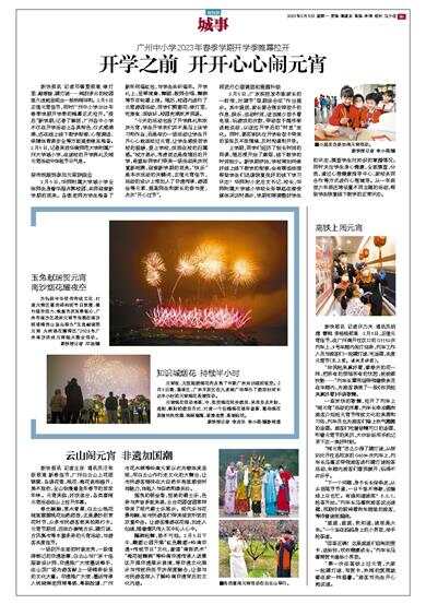 广州中小学2023年春季学期开学季帷幕拉开 新快报讯 记者邓善雯报道 做灯笼、敲春鼓、猜灯谜……阔别多日的校园里久违地呈现出一派热闹祥和。2月5日正值元宵佳节,同时广州中小学2023年春季