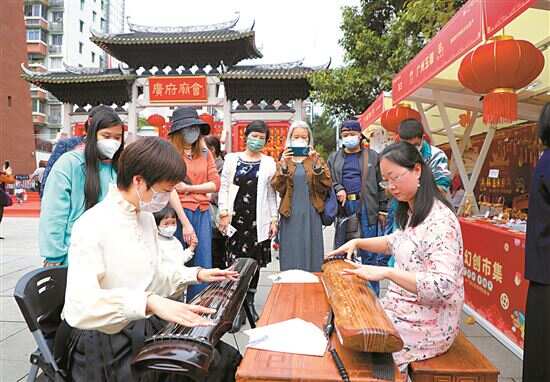 ■市民现场感受岭南古琴艺术的魅力。 新快报记者 林里/摄 |