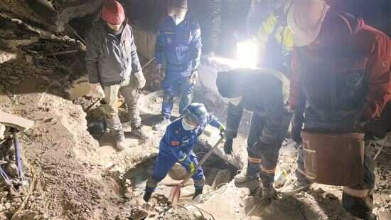■2月10日,蓝天救援队队员在土耳其地震重灾区马拉蒂亚省参与搜救。广东蓝天救援队供图