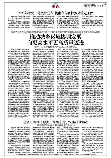 省委农村工作会议暨全面推进“百县千镇万村高质量发展工程”促进城乡区域协调发展动员大会召开 黄坤明王伟中黄楚平林克庆孟凡利出席会议 新快报讯 2月13日,省委农村工作会议暨全面推进“百