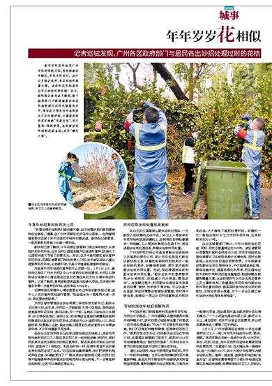 记者巡城发现,广州各区政府部门与居民各出妙招处理过时的花桔 春节买年花年桔是广州市民的传统习俗,兔年新春花市畅旺,市民丰收而归。如今正月接近尾声,年花年桔处理量大增。这些年花年桔废弃后可以