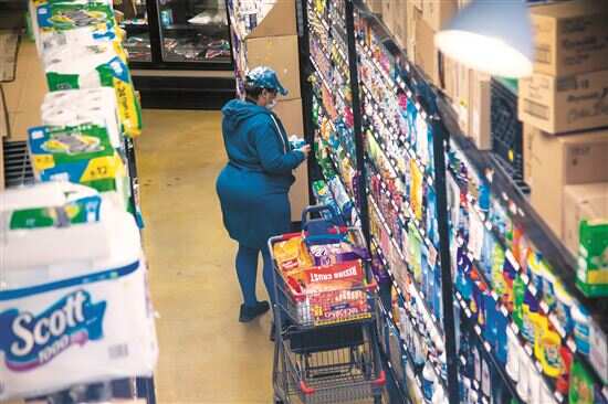 ■2月14日,顾客在美国纽约市布鲁克林一家食品杂货店选购物品。新华社发 |