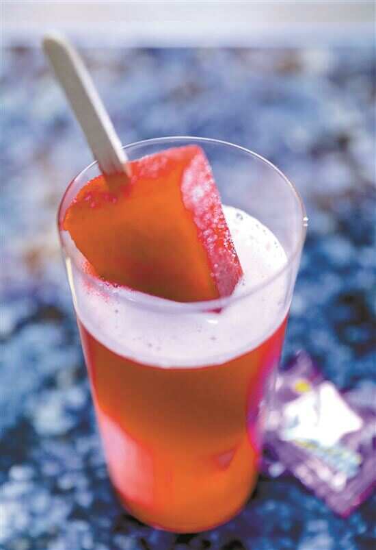 ■鲜艳的色彩配上树莓冰棍的造型,这一杯从新会到云南的鸡尾酒很是讨喜。 |