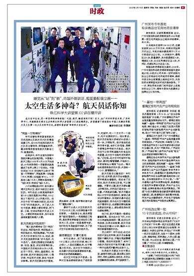 睡觉从“站”到“躺”、吃饭不能说话、剪发要配吸尘器…… 珠江科学大讲堂第102讲在穗开讲 在太空中生活,是一种怎样的神奇体验?吃饭、刷牙、睡觉有何不同?近日,由广州市科学技术局、广东