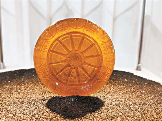 ■融合传统技法和现代工艺雕刻技术的琥珀雕刻非遗展品《松鹤》。新华社发 |