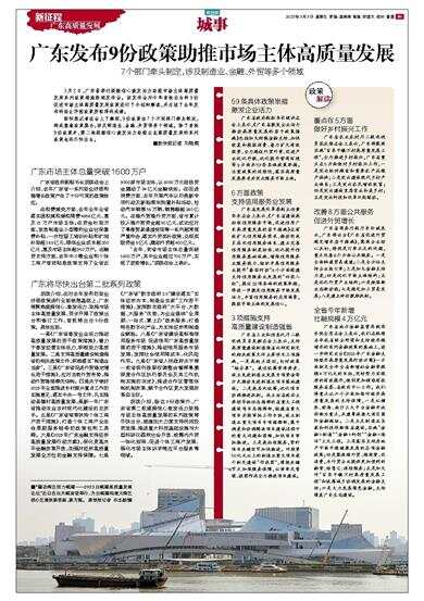 7个部门牵头制定,涉及制造业、金融、外贸等多个领域 3月2日,广东省举行提振信心激发活力助推市场主体高质量发展系列政策措施新闻发布会。该发布会对今年首批出台的9份促进市场主体高质量发展政策