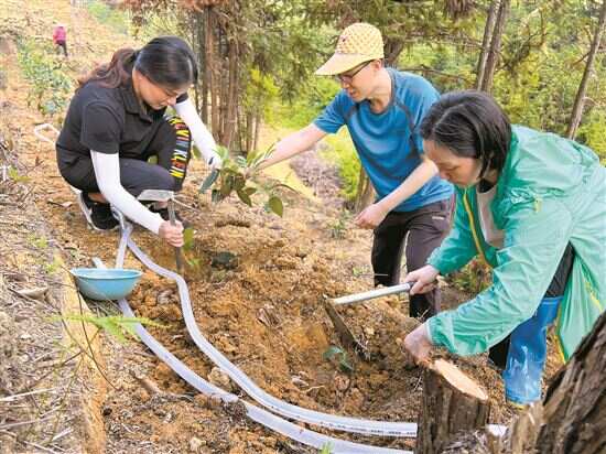 ■在茶树种植示范点,总能看到张紫伟(右一)忙碌的身影。 |