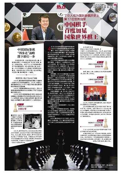 丁立人成为国际象棋历史上第17位世界冠军 4月30日在哈萨克斯坦首都阿斯塔纳举行的2023国际棋联国际象棋世界冠军赛以一种令人窒息的方式结束,中国棋手丁立人在快棋加赛的最后一盘力克俄罗斯棋