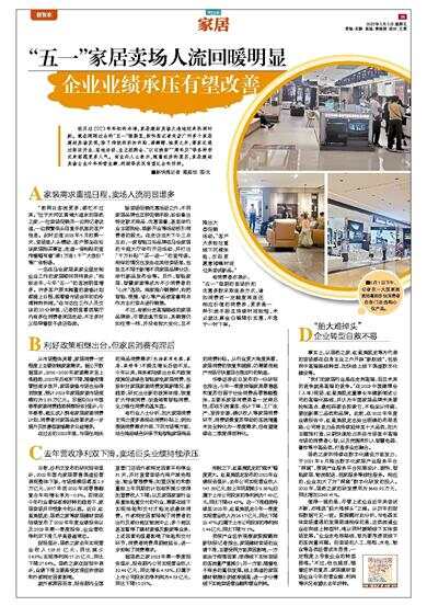 “五一”家居卖场人流回暖明显 企业业绩承压有望改善